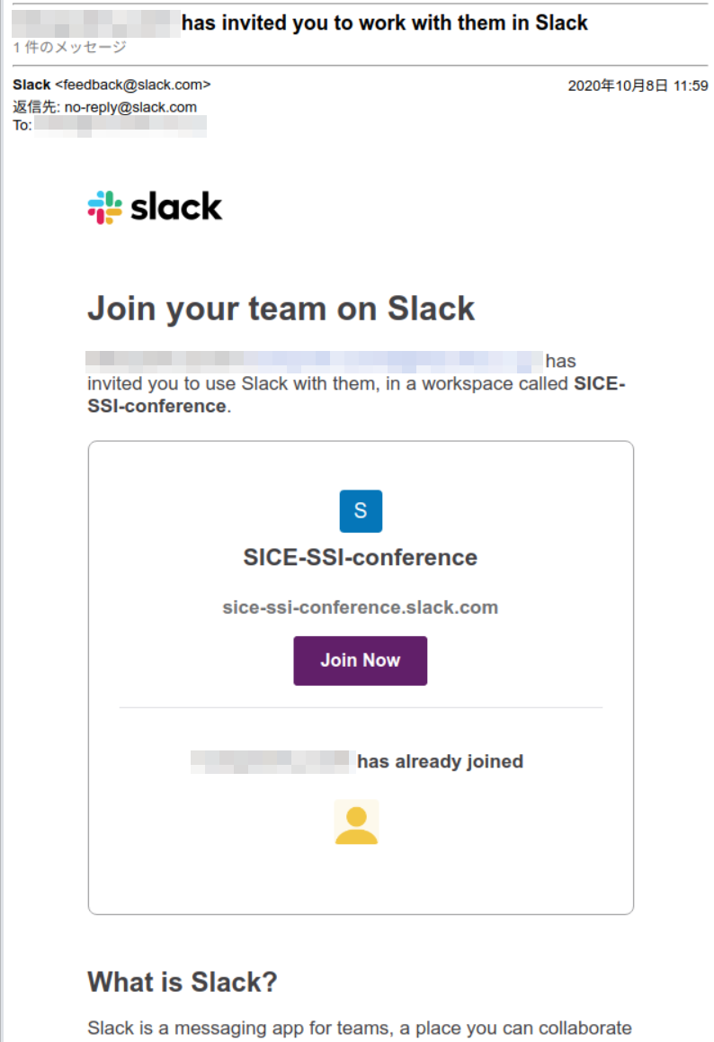 すべての参加者にSlackへの招待メールをお送りいたしますので,招待メール内のリンクからご登録ください.